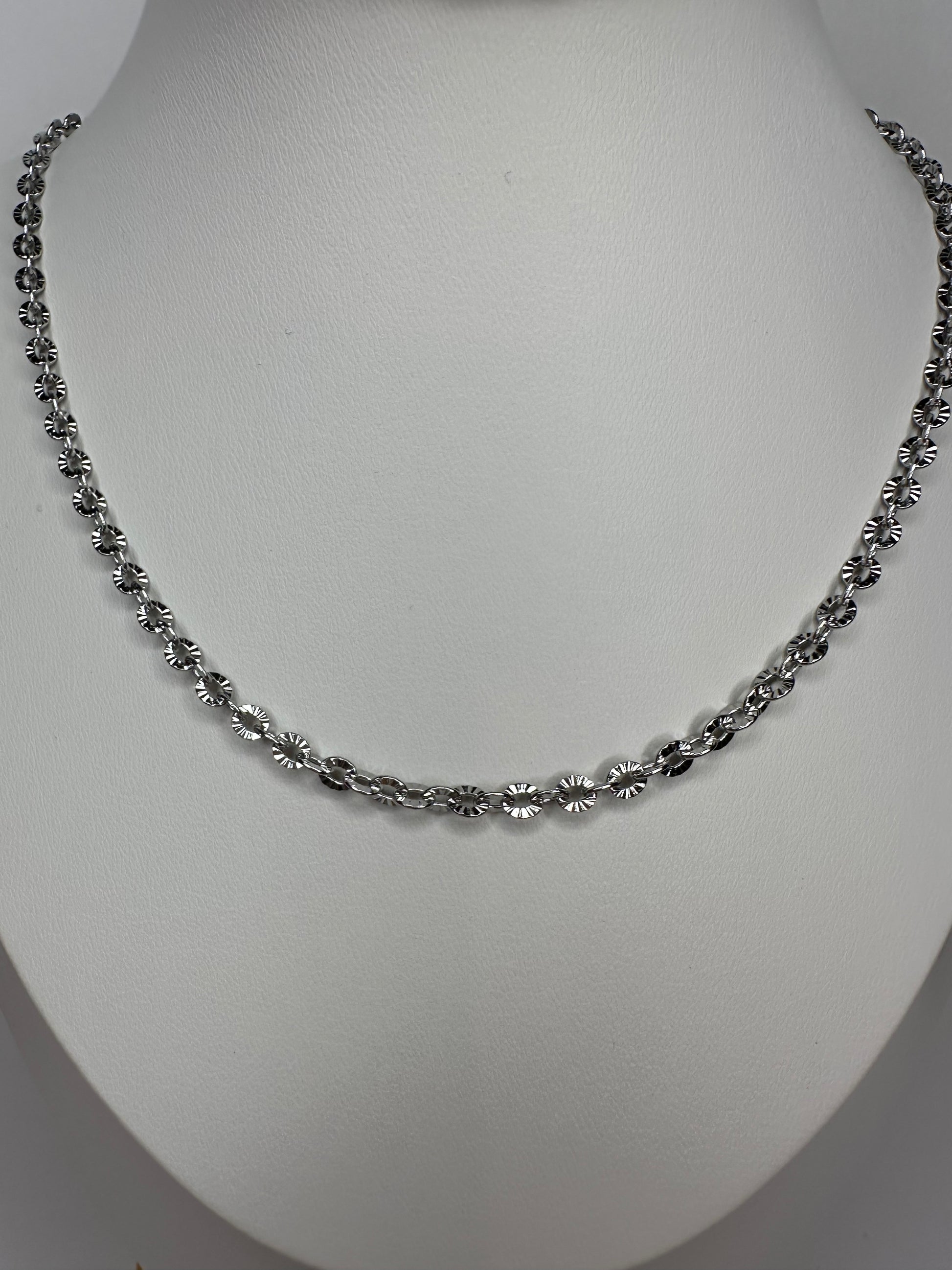 This Sparkly Embossed Chain is expertly crafted with Stainless Steel for lasting beauty. Its non-tarnish design ensures it can be worn safely in water, making it perfect for everyday wear. With long-lasting durability, this chain is a must-have for any jewelry collection.