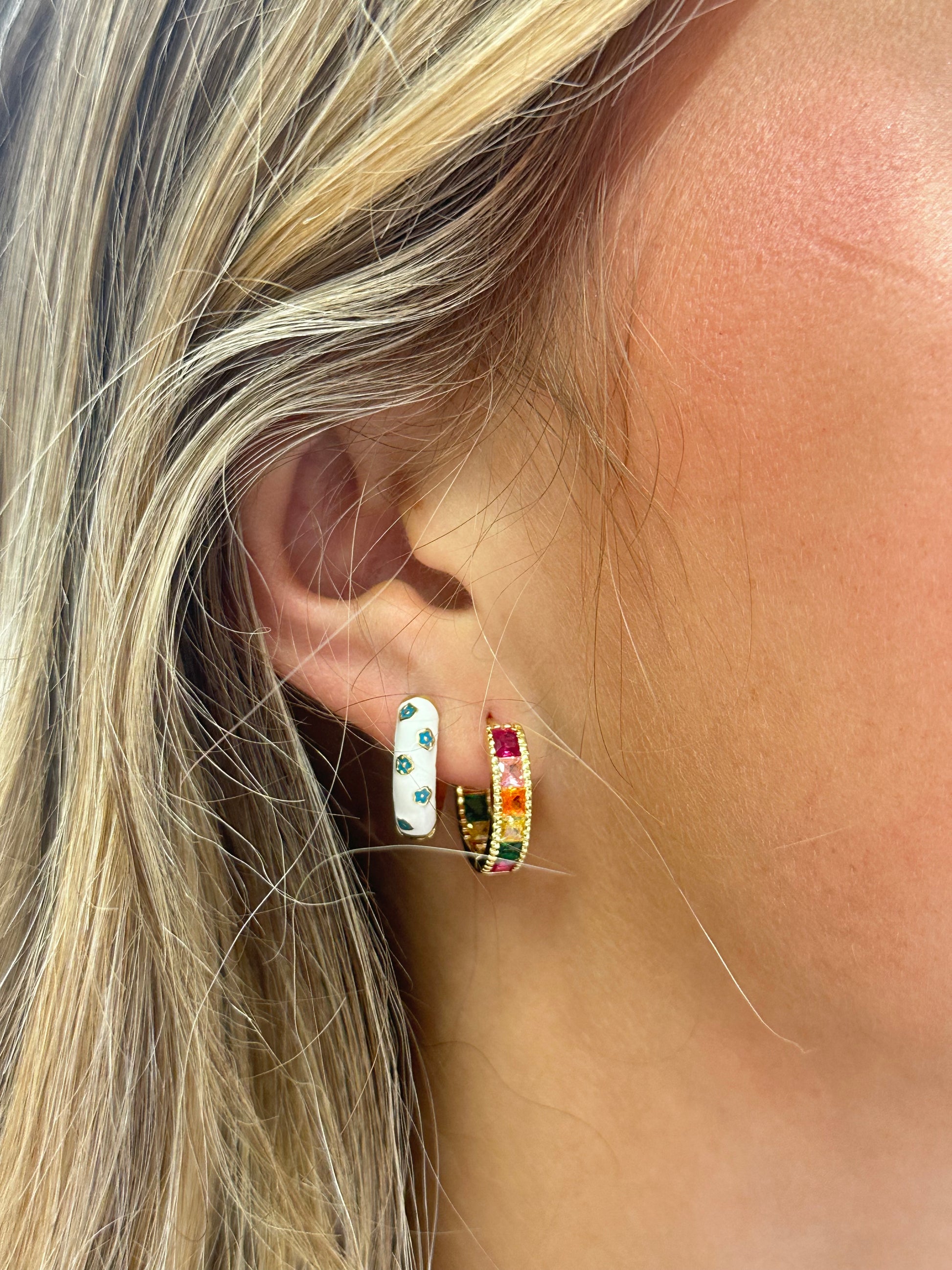 Add a touch of sophistication to your look with our luxurious Daphne Hoops. Crafted with 18k gold and boasting a simple yet elegant design, these hoops are perfect for any occasion. The design provides a unique look to your everyday outfits! Elevate your style with this timeless piece.